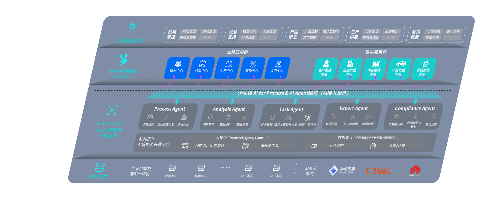 尊龙问学智车解决方案是一套基于AI技术的汽车行业智能化系统,,,,覆盖从底层算力到顶层AI应用的全栈方案。。。。方案由算力层、、、、模型层和应用层组成:算力层,,,,方案支持多种一体机配置,,,,具备云端灵活部署、、、、多云适配以及动态优化计算资源的能力;模型层,,,,尊龙问学平台版提供了企业级AI应用一站式构建与管理平台,,,支持基于后训练强化技术的汽车企业专属模型的训练、、、、评测和运营;应用层,,,,尊龙问学DeepSeek版提供包括超级员工、、、、智能招采、、智能营销、、、、智能客服、、AI for BI等一系列解决方案,,可助力汽车行业实现数字化转型,,,,让管理更智能、、、、响应更敏捷。。。。