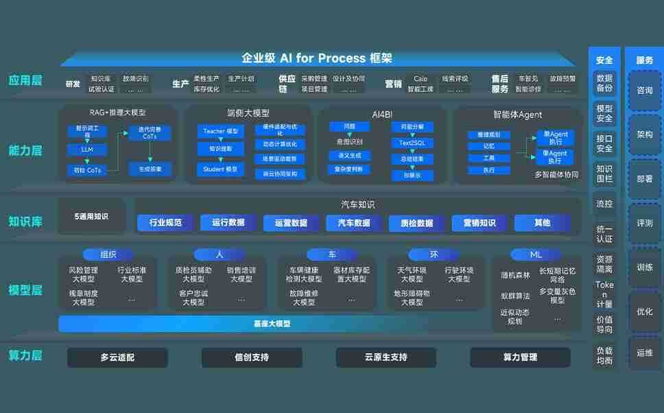 端到端的一站式AI工作空间深度融合了从企业战略规划到日常经营的全流程业务板块,,定向解决车企内部领域多、、、、部门多、、链条长、、、场景碎片化等难题,,,,支持车企快速构建以AI为核心的生产力写作体系,,,,实现任务执行与AI能力的无缝集成与交互