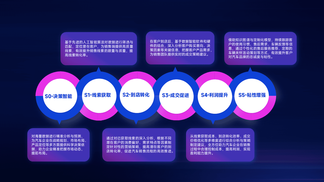 通过拓宽潜在客户来源、、、优化线索分配并提高到店转化率,,,以增强销售效率。。。。同时,,,利用线索数据不断优化分析模型,,,有效提升转化率,,,,扩大营销影响力。。。